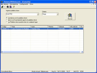 Sistema Bibliotecario te permite crear tu propia base de datos de libros de una biblioteca y acceder a ella en calidad de bibliotecario o de usuario.